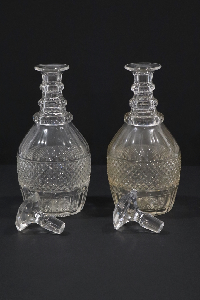 SAINT-LOUIS. Modèle Trianon, créé en 1834. Deux carafes à vin. Hauteur : 28 cm