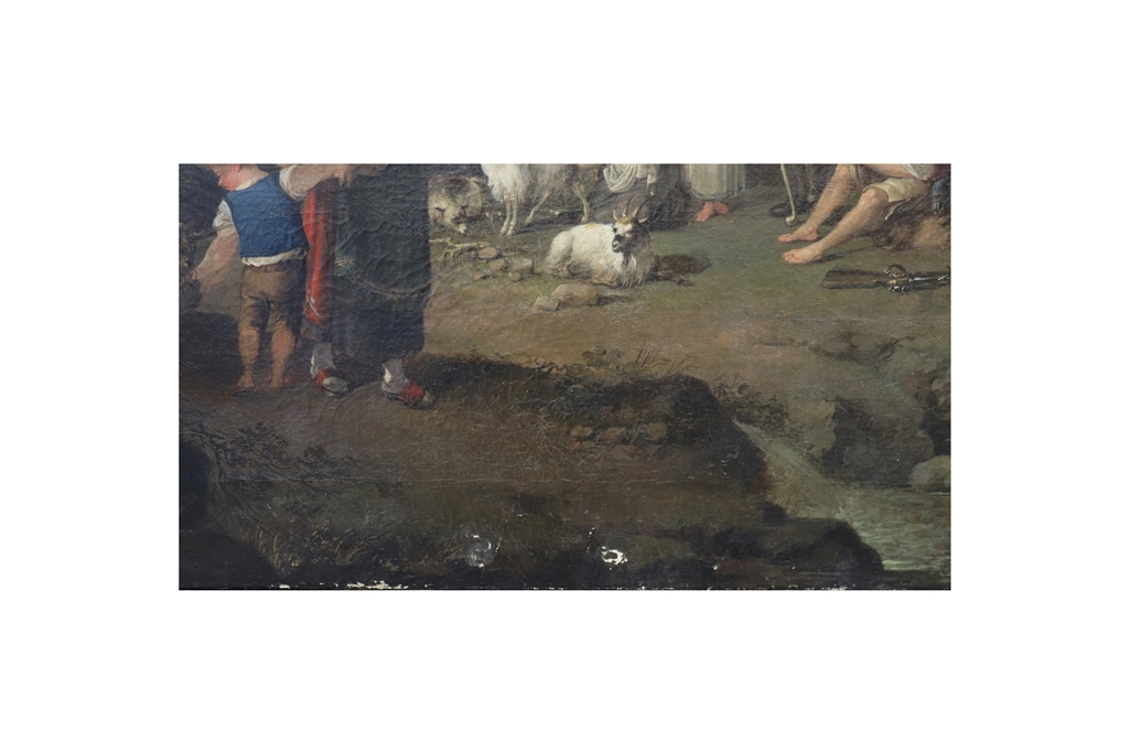 Ecole ALLEMANDE vers 1800, entourage de Michael WUTKY. Famille de bergers près d'une cascade. Toile. Hauteur : 236 cm. Largeur : 153 cm. Sans cadre - Expert : Stéphane Pinta du Cabinet Turquin