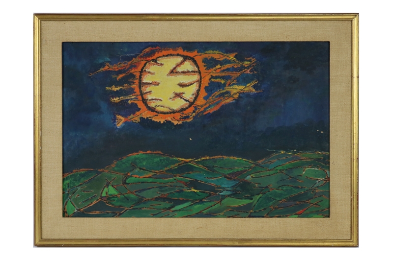 Lot N°245 – Jean-Claude GUIGNEBERT (né en 1921). Le soleil. Huile sur carton (accidents) signée au dos. Dimensions : 37,5×57 cm – Estimations : 80/120 €