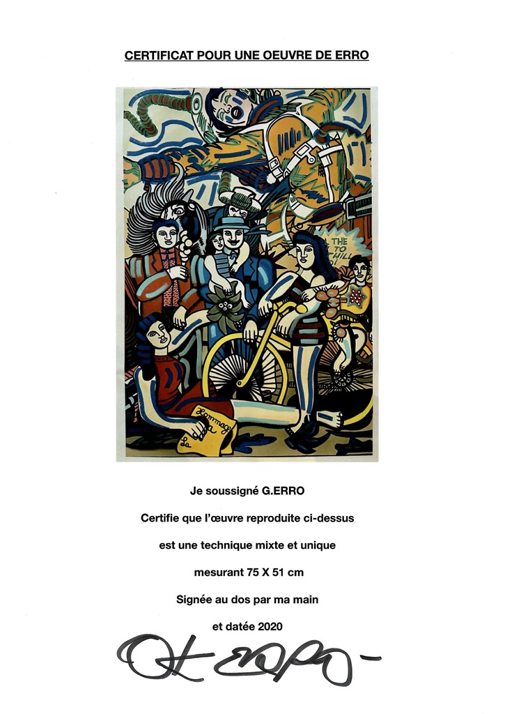ERRO (né en 1932). Hommage à Fernand Léger. Technique mixte signée au dos. Dimensions : 75x51 cm