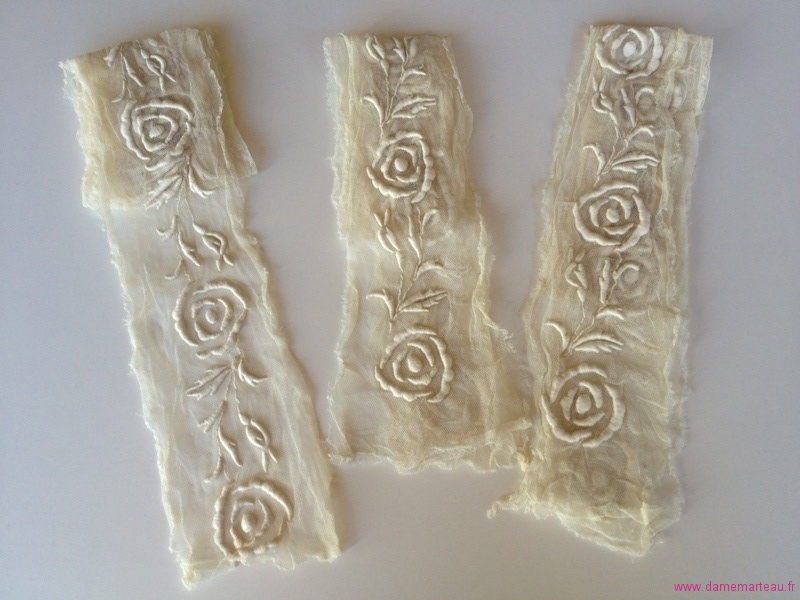 Lot 10 - Trois pièces de tulle brodé de fleurs d'un mètre de longueur chacune - Estimations : 40/50 €