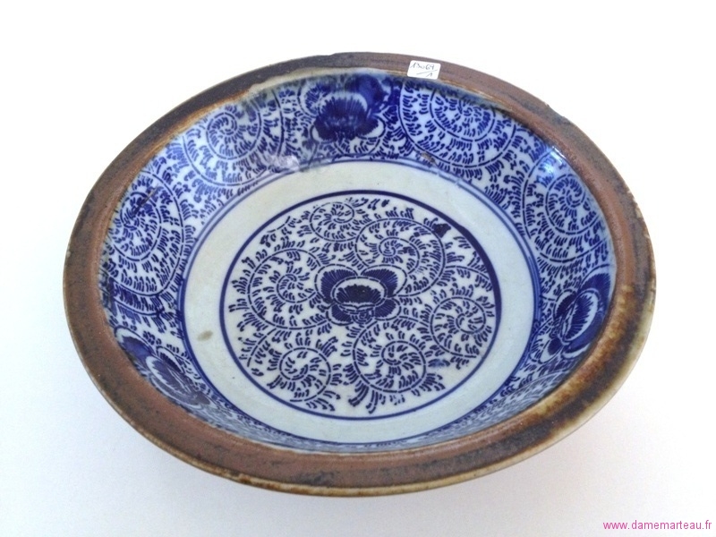 Lot 81 - CHINE. Plat creux en porcelaine à décor d'escargots et de fleurs stylisés (accident sous le bord). Epoque XVIIIème. Diamètre : 27,5 cm. Hauteur : 8,5 cm - Estimations : 100/120 €