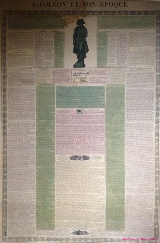 Lot 95 - « Napoléon et son époque », gravure illustrée avec textes (traces d'humidité). 94x63 cm - Estimations : 80/100 €
