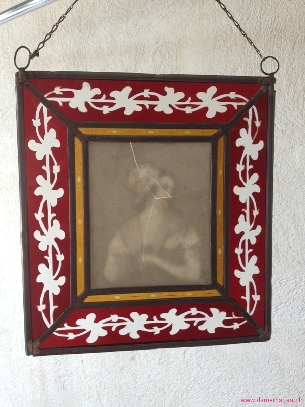 Lot 180 - Paire de vitraux en forme de cœur à décor de couples d'enfants alsaciens. Epoque Fin XIXème - Début XXème. 19,5x19,5 cm - Estimations : 100/150 €