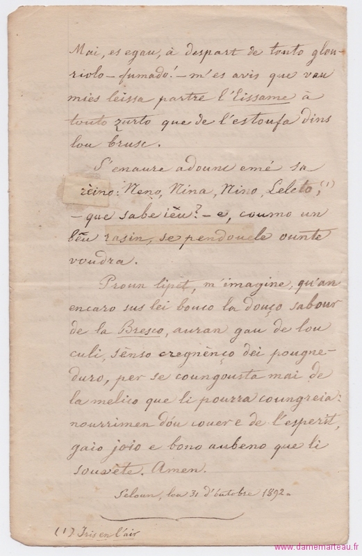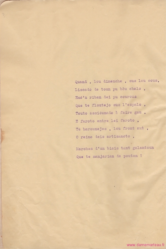 Lot N° 190 - Antoine-Blaise CROUSILLAT (1814-1899). Ensemble de manuscrits originaux datés de 1839 à 1891 de 75 feuilles in-folio pour la majorité, certaines numérotées et datées, certaines pages cornées et découpées. Comprenant Lou Magistre de Cucugnan, Li quatre Bouscalie, La Mascaraduro, Tistoun lou Galejaire, Un Ressimelage, Un beu Miracle, La Forço de l'abitudo, La Counfessioun entiero, Lou Mège d'Oupedo, La Cherpo, Ma Viletodes sonnets, romances, chansons en langue provençale avec parfois traduction en regard et portées de clef de sol. On y joint une carte postale représentant Lou felibre-cantounié Amable RICHIER, et une carte photo représentant Antoine-Blaise CROUSILLAT, ainsi que quelques documents divers - Estimations : 1500/2000 €