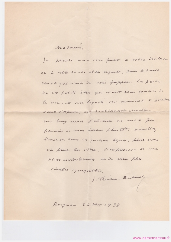 Lot N° 192 - Ensemble de correspondance de cinquante-cinq personnalités de l'époque reçue par Antoine-Blaise Crousillat classée par ordre alphabétique dont : huit lettres signées de Théodore Aubanel et datées de 1854 à 1889, un courrier de William Bonaparte-Wyse de 1867, une lettre de Jean Brunet de 1854, onze courriers de Paul Giéra de 1851 à 1888, dix-huit courriers de Frédéric Mistral de 1854 à 1899, trois courriers de Jean-Roch Isnard de 1881, 1883 et 1885 - Estimations : 8000/10000 €