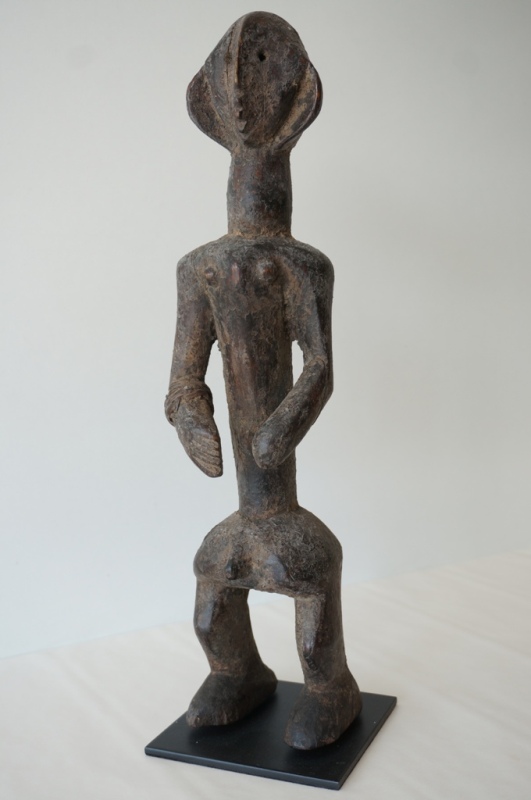 Lot N° 87 - NIGERIA. Homme debout à grandes oreilles. Statue en bois à patine croutée probablement de l'ethnie Chemba. Hauteur : 42,5 cm - Estimations : 350/400 €