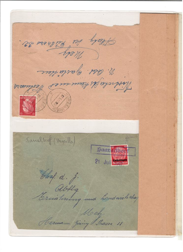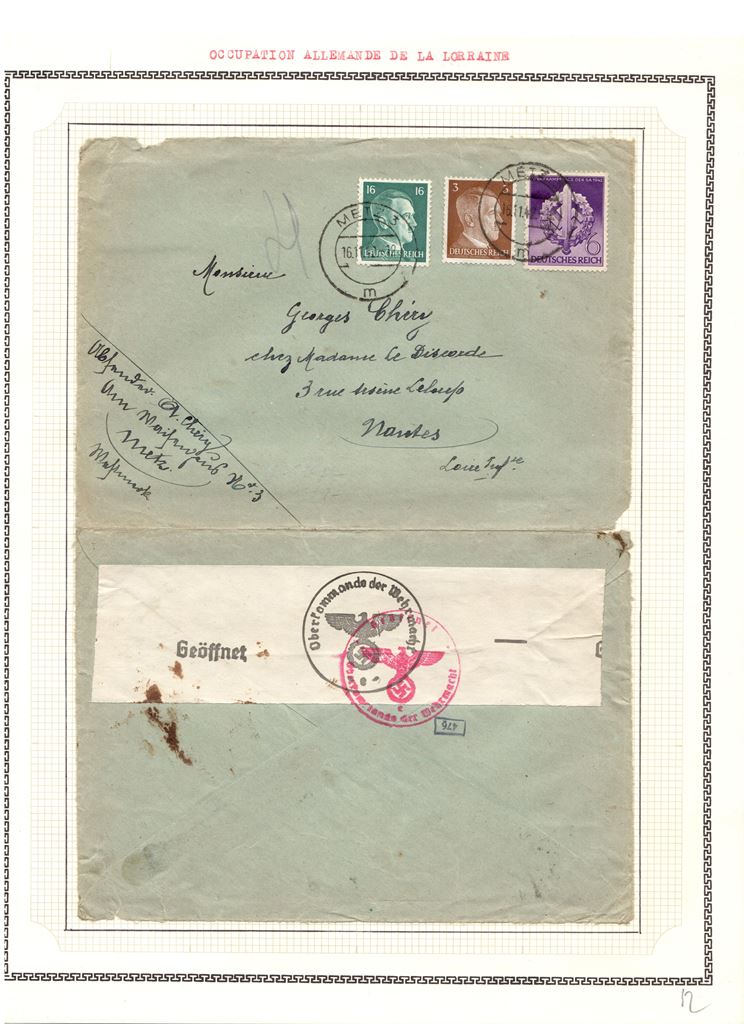 – Description : Etude sur l’affranchissement en Lorraine pendant la 2ème guerre mondiale de Aachen à Woippy, 355 lettres + devant et fragments